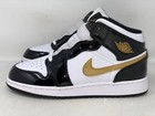 Nike Air Jordan 1 Mid SE Shoes Size 5Y Black White Gold Patent GS BQ6931-007